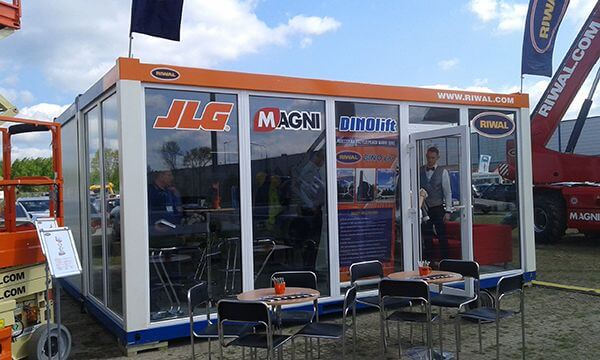 Dla naszego Klienta firmy Riwal – lidera, a także specjalisty w branży podnośników i podestów ruchomych oraz ładowarek teleskopowych przygotowaliśmy, zgodnie z przedstawionymi wymaganiami, nietuzinkowe stoisko targowe. Wnętrza oraz same kontenery zostały zaaranżowane pod indywidualne potrzeby Klienta, co dało znakomity efekt zarówno wizualny, jak również praktyczny. Popatrzcie sami.